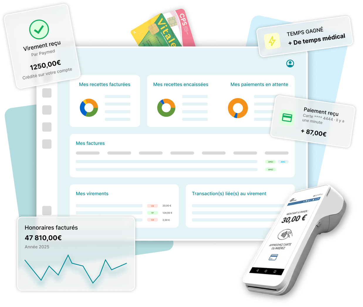 Une seule plateforme pour gérer facturation, télétransmission et encaissement de vos honoraires.